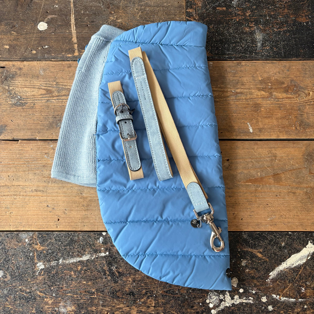 • Puffer dog coat with Merino wool knit chest