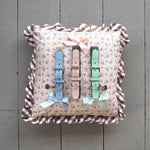- Floral cotton pillow with woven check frill border