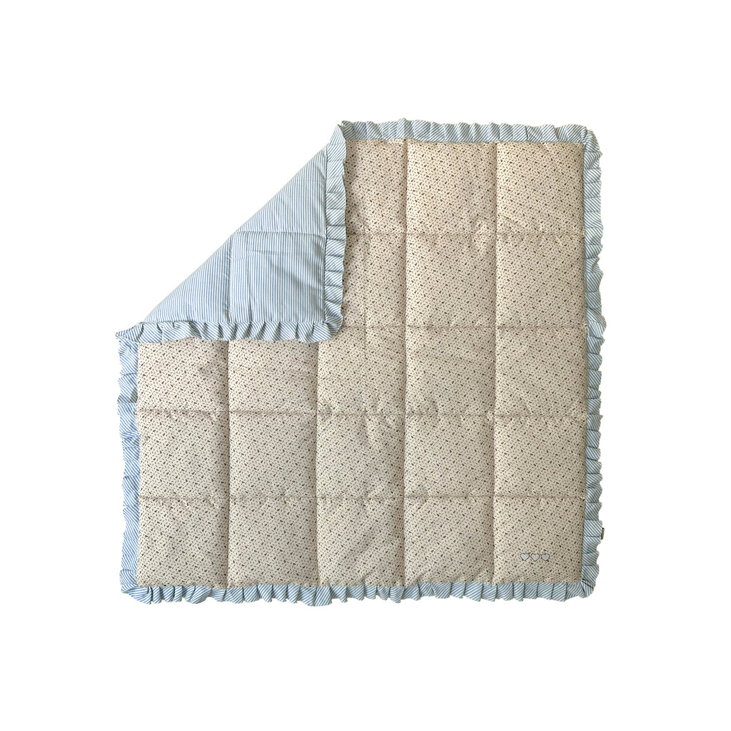 • Floral cotton quilt with woven check reverse and frill border