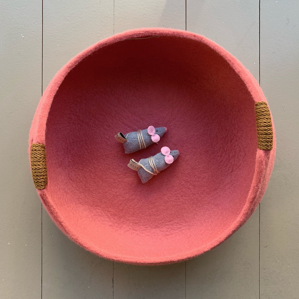 Mungo & Maud's Pebble Cat Bed is the sweetest place to nest. This curious cave-like bed, carved out of wool felt, has bound handles to carry it from room to room... hence, your cat will only be a stone's throw away.