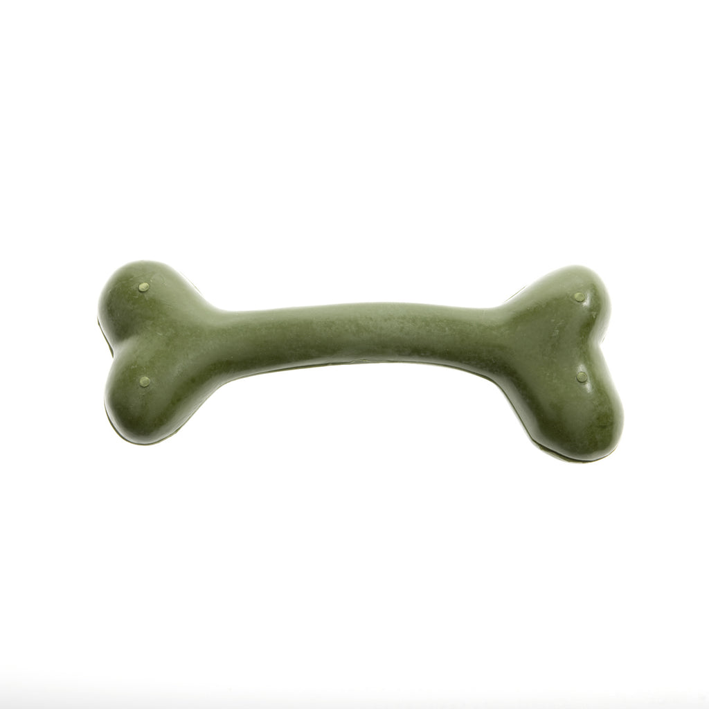 Your dog has a bone to pick with you... the Rubber Bone Dog Toy. This gum rubber toy that he loves to chew, is scented with Pistachio... perhaps that what’s made you steal it.